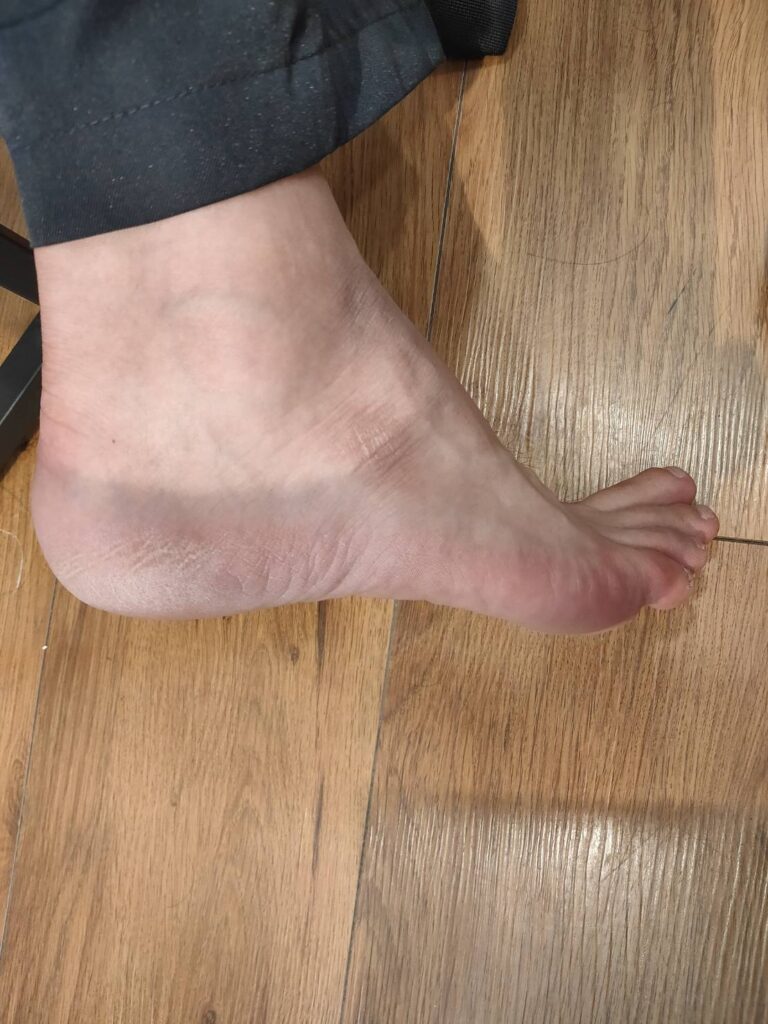 • 腫れ・熱感: アキレス腱の付着部や中央部分が赤く腫れたり、熱を持ったりすることがあります。