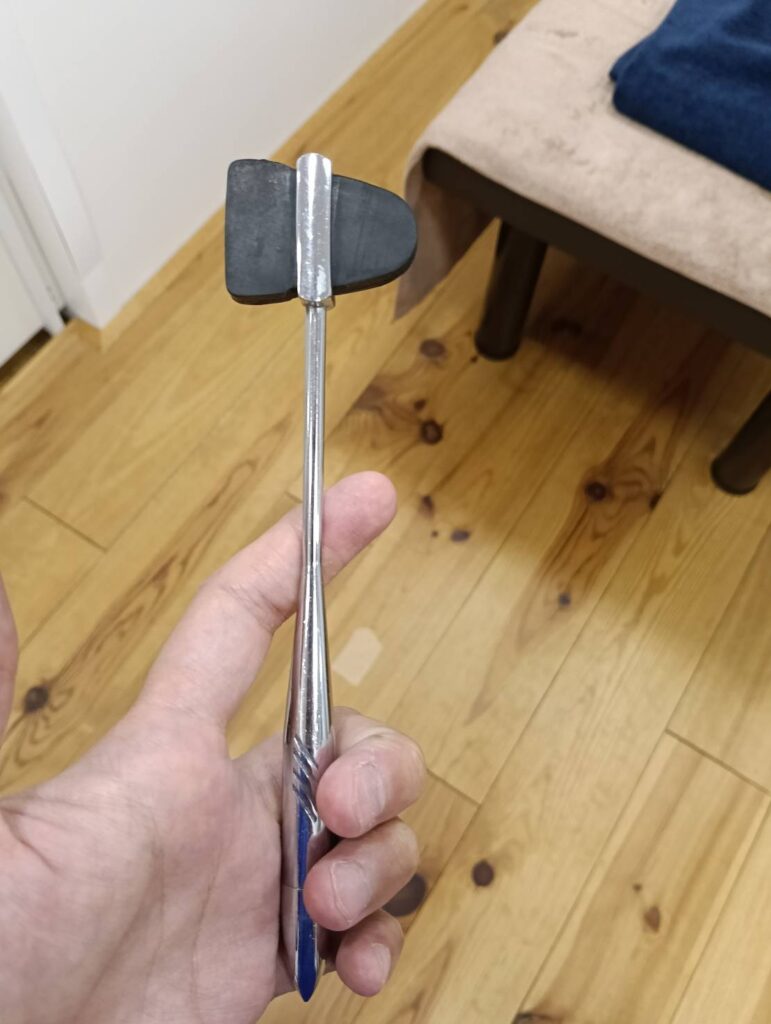 ハンマーのような形状で、先端で腱を叩き、反射の有無や程度を確認します。